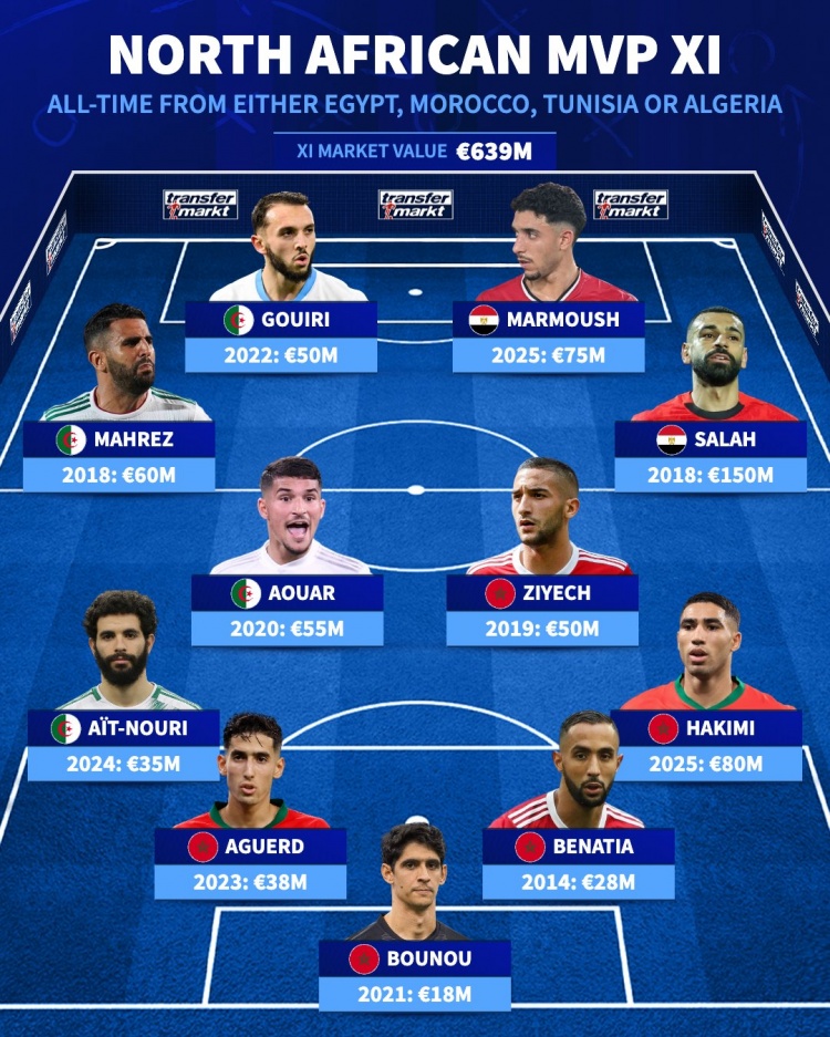 北非历史身价最高声势:萨拉赫领衔,阿什拉夫、马尔穆什在列