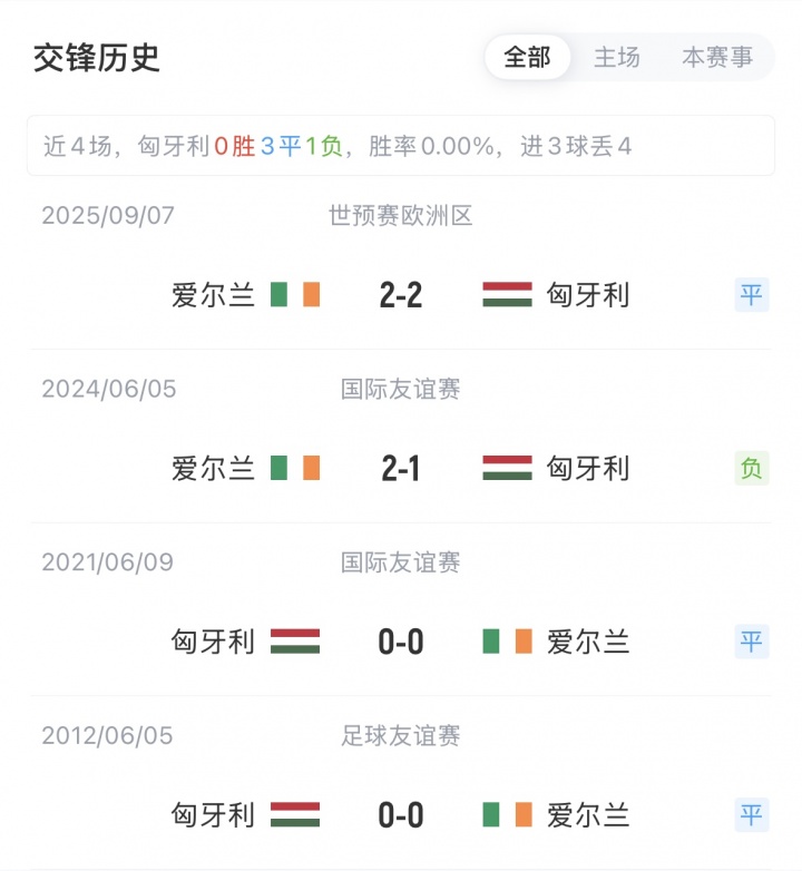 【交锋历史】