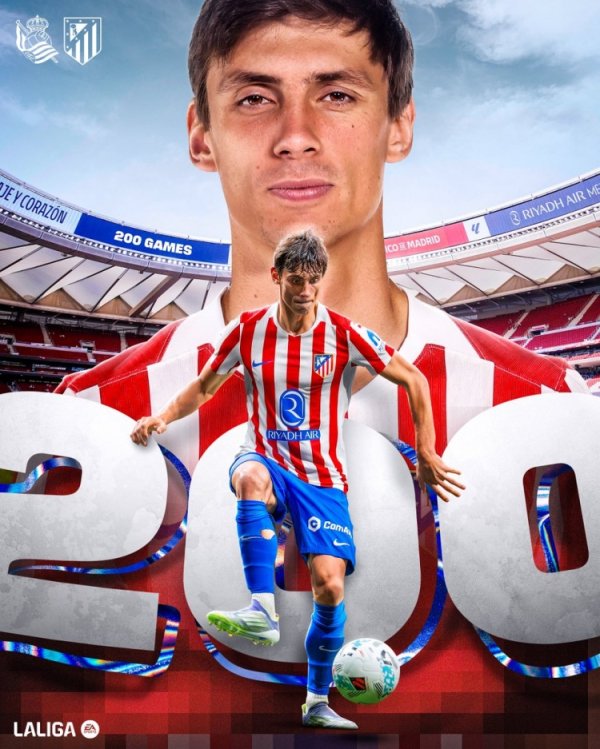 西甲官方发布海报,道贺马竞后卫勒诺尔芒迎来西甲200场里程碑