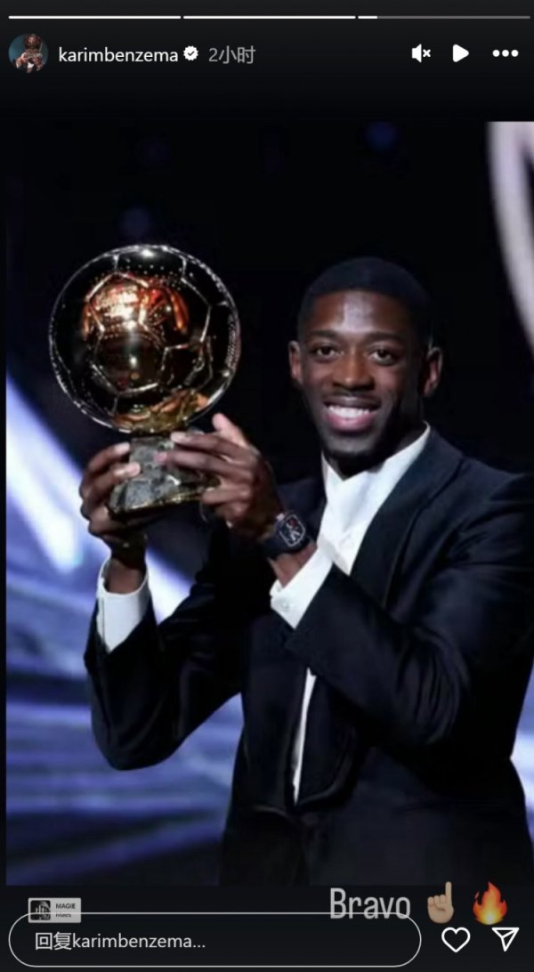 迎接加入金球先生行列!本泽马晒登贝莱领奖照:太棒了