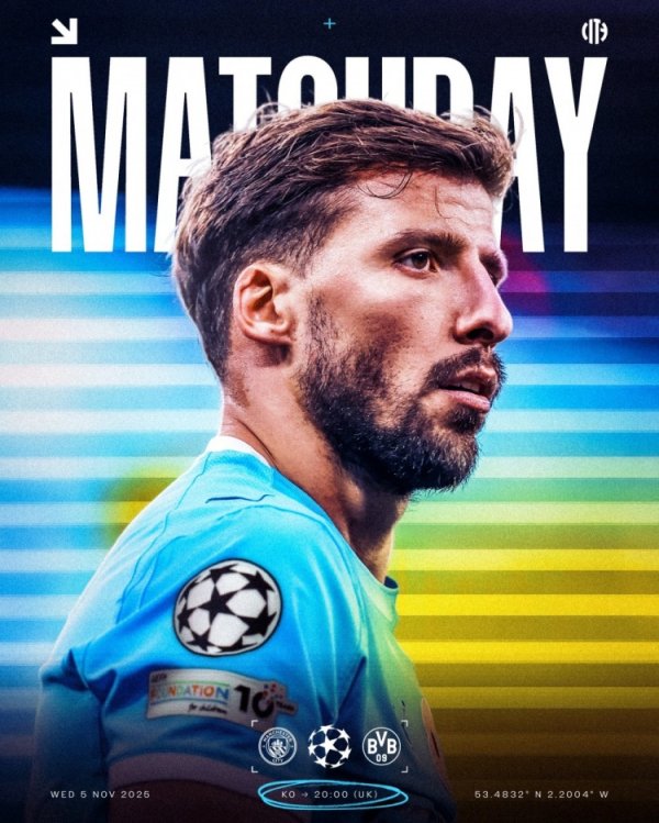 强强对话!曼城发布欧冠对阵多特海报,鲁本-迪亚斯单东说念主出镜