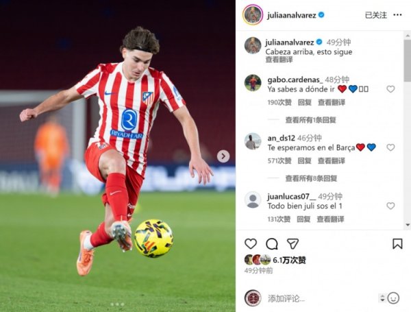 12月3日讯 西甲第19轮比赛,马竞客场1-3不敌巴萨。 此役阿尔瓦雷斯为马竞踢满全场,但只须1次射门,赛后他在应付媒体上晒出比赛相片,配文:“抬入手来,战役络续。”......查看更多