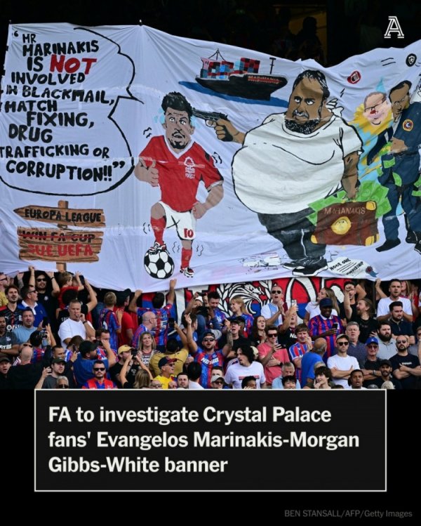 8月25日讯 英超第二轮比赛,水晶宫主场1-1战平诺丁汉丛林。 据TA报说念,英足总将访问水晶宫球迷展示的一面横幅,横幅上披露诺丁汉丛林雇主马里纳基斯抓枪对着中场球员吉布斯-怀特的头部。 横幅上吉布斯-怀特说说念:“马里纳基斯先生并未波及勒诈、把握比赛、贩毒或靡烂!”马里纳基斯一直热烈否定与这些指控干系的任何不当步履。 阐述媒体的报说念,吉布斯-怀特今夏一度接近转会热刺,但诺丁汉丛林拒却放东说念主,并以为热刺违纪宣战球员,计议举报热刺,最终球员续约留队。......查看更多