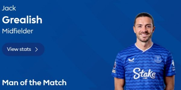 打进绝杀,英超官方:格拉利什当选埃弗顿2-1水晶宫全场最好
