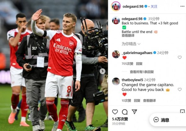 9月29日讯 阿森纳在本轮英超2-1绝杀逆转纽卡,赛后,厄德高更新了嘱咐媒体。 厄德高写说念:“回到胜轨。这3分拿的嗅觉真棒,斗争到底。”......查看更多